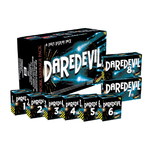 8 large fireworks that will give you a spectacular fireworks display. All fireworks are labeled, from 1 to 8, to give you a fully syncronised and perfectly choreographed fireworks display.