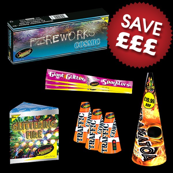 1x Selection Box, 5x Fountain and 3x Pack of 5 Sparklers.