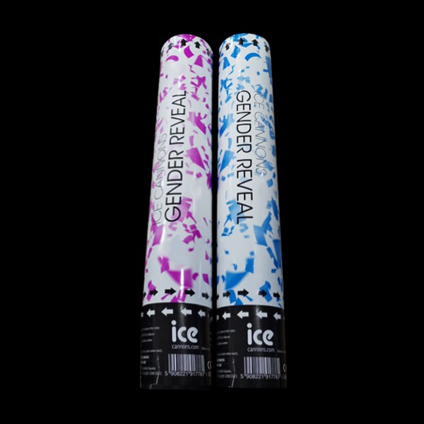 1 Gender Reveal BOY Confetti Cannon. This product is 30cm long and contains blue coloured tissue paper confetti pieces that when ejected shoot into the sky and gently flutter back down to the ground.
