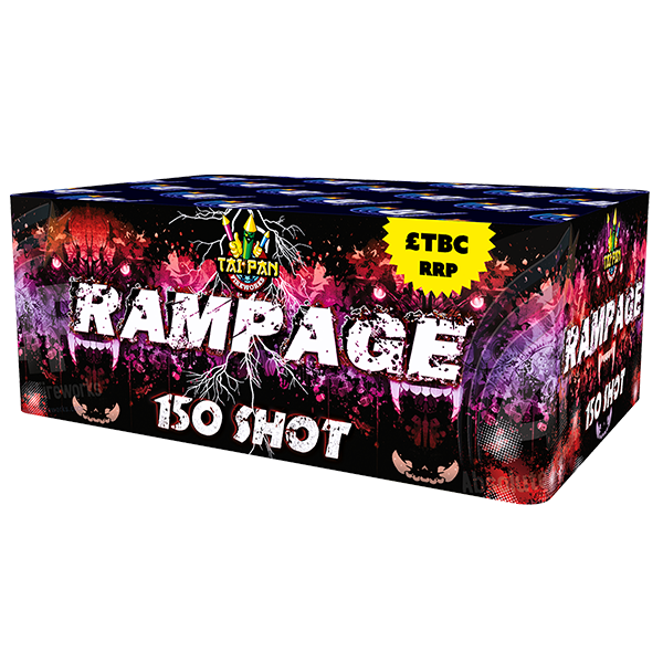 New for 2015, Rampage is a full on 150 shot Category 3 firework that runs for almost 2 minutes! A terrific firework that will please all ages with a wide range of effects including Crackling Flower Balls, Green Glitter, Blue Glitter, Whistles, Silver Fish to name a few. An amazing duration piece and outstanding value. Also features dual fusing for added safety.