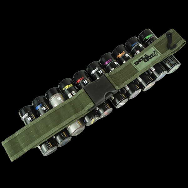 The Hang Ten Belt holds up to 10 Smoke Grenades and can be worn as a bandolier (over your shoulder) or as a standard belt. The Hang Ten Belt is fully adjustable to fit players of all sizes and available in either olive, tan or black.